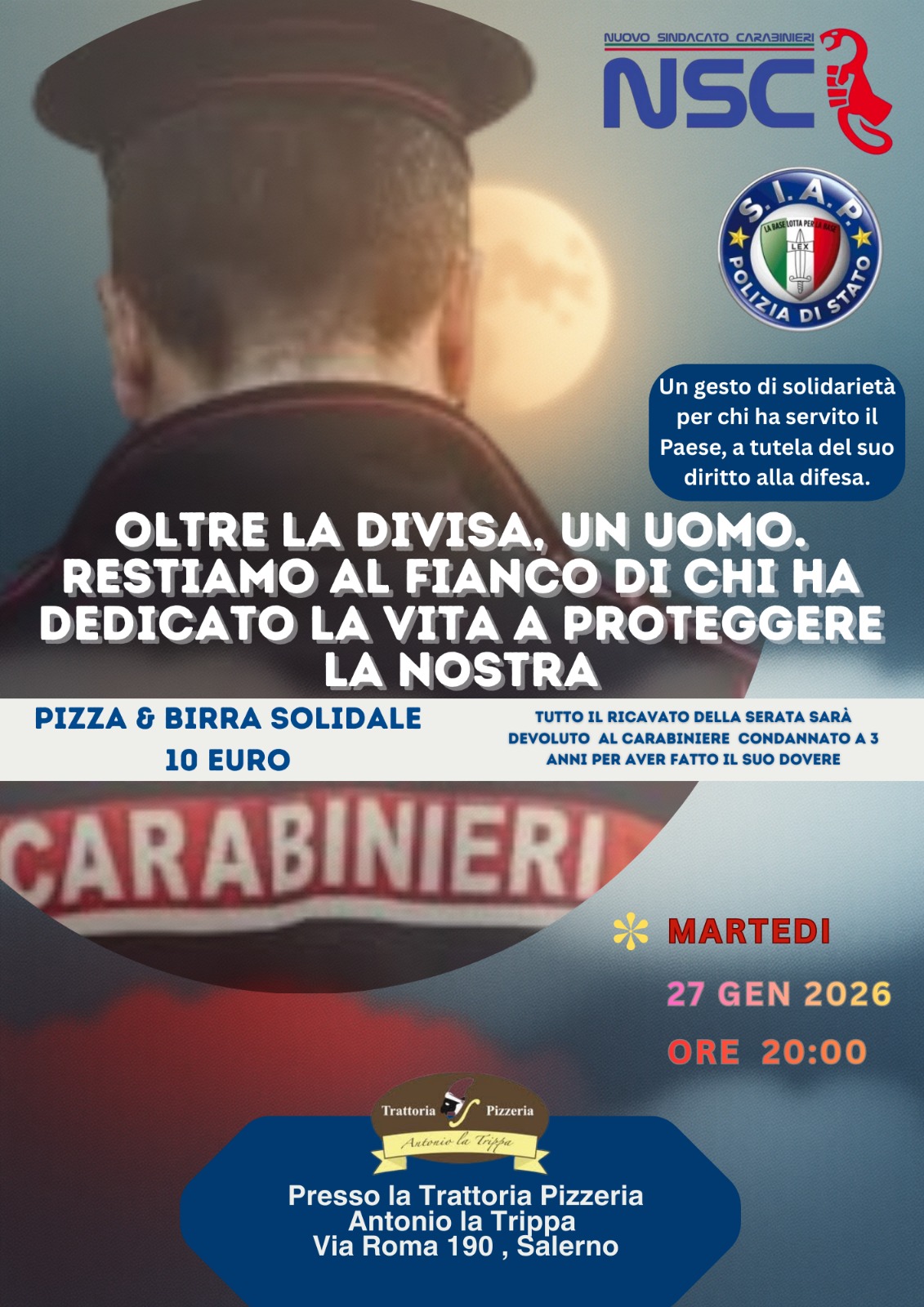 L’intero ricavato della serata sarà devoluto a sostegno di un carabiniere recentemente condannato a tre anni di reclusione per fatti avvenuti durante il servizio, al fine di tutelare il suo diritto alla difesa e offrire un gesto concreto di solidarietà.