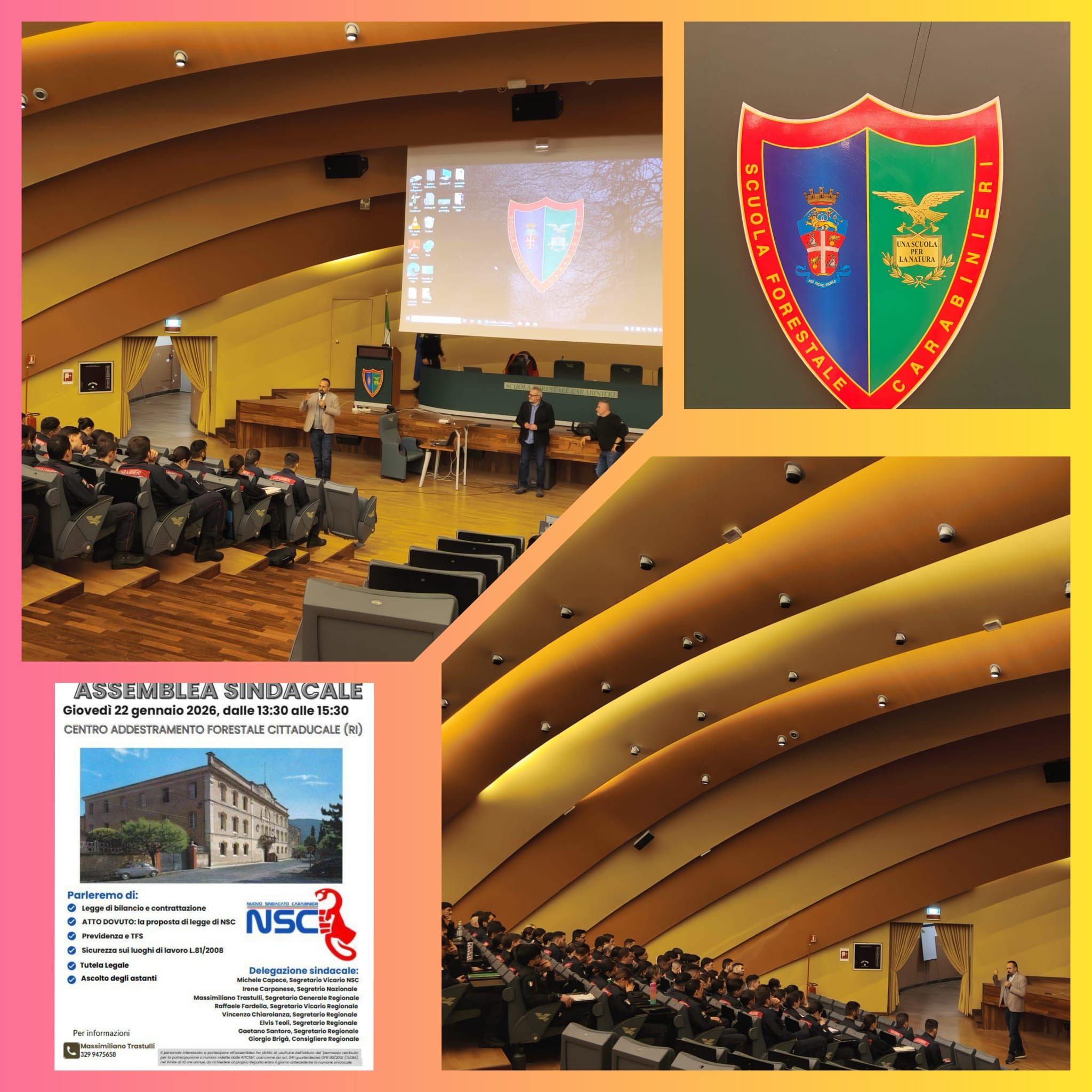 Si è svolta presso la Scuola Forestale Carabinieri di Città Ducale, in provincia di Rieti, un’assemblea molto partecipata che ha visto la presenza di una nutrita platea di giovani carabinieri, protagonisti di un confronto aperto e costruttivo con i rappresentanti di NSC.