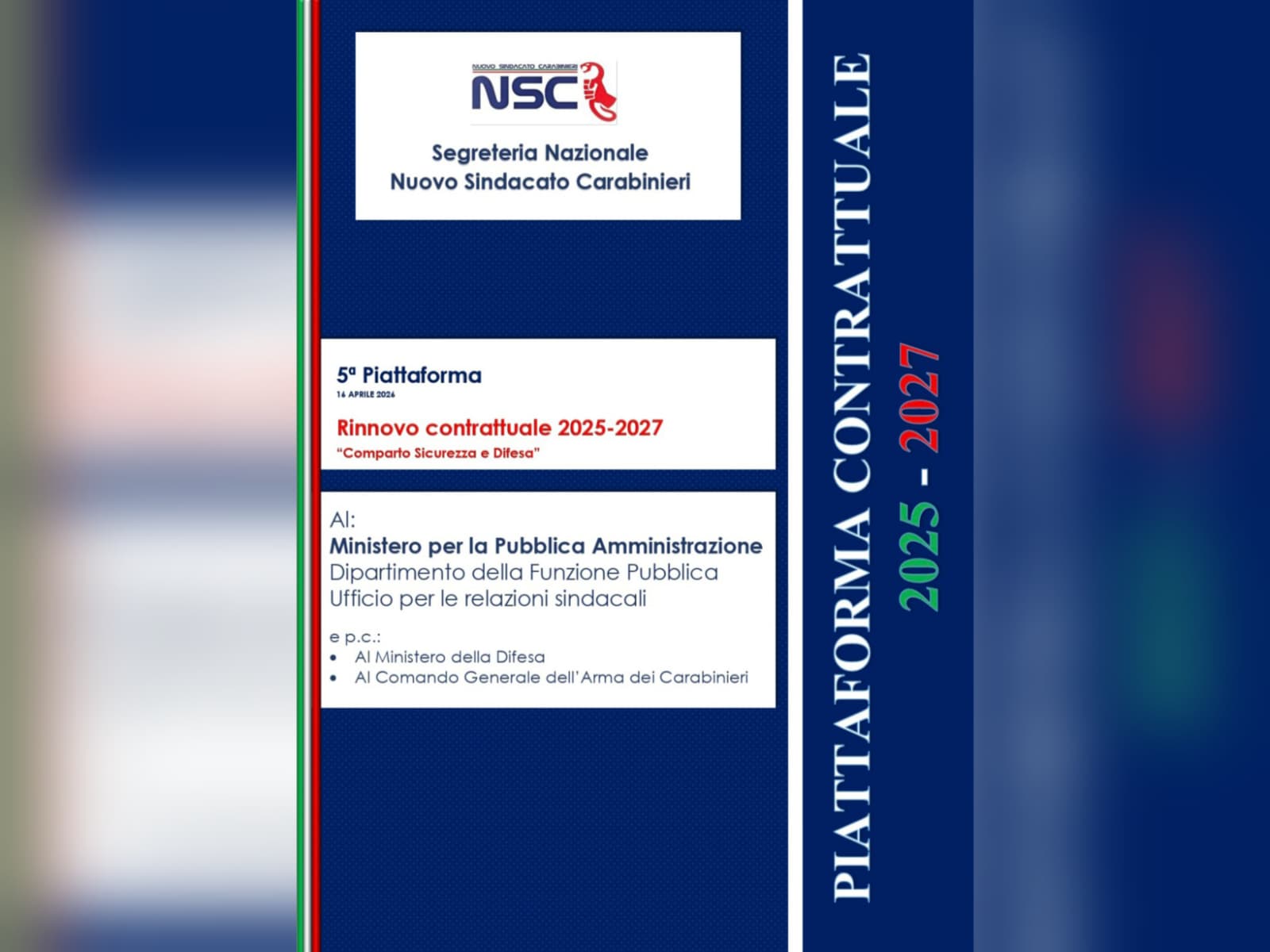 ROMA, 16 Aprile 2026 – Il Nuovo Sindacato Carabinieri sta depositando in questo momento, presso il Dipartimento della Funzione Pubblica, la 5° Piattaforma Contrattuale per il triennio 2025-2027.