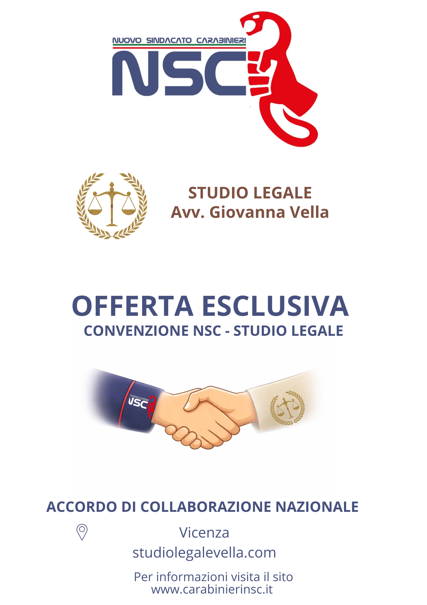 La segreteria Regionale Veneto ha stipulato una convenzione con lo “Studio legale Avv. Giovanna Vella” che ha riservato agli iscritti del Nuovo Sindacato Carabinieri condizioni agevolate.