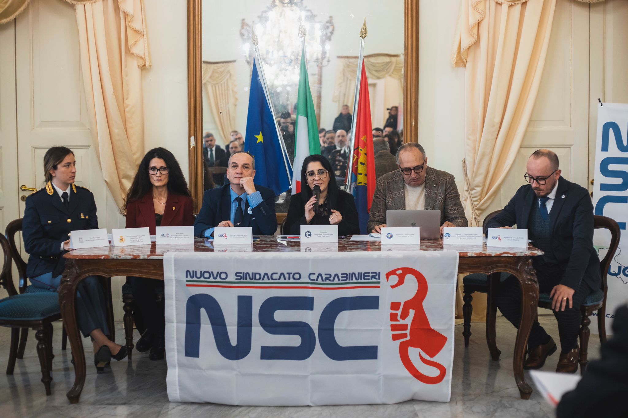 Gli ospiti, accolti dall’assessore al patrimonio del Comune di Taranto Carlo Palmiro Liuzzi e da Massimiliano Zetti e Nicola Magno, rispettivamente segretario generale e segretario nazionale del Nuovo Sindacato Carabinieri, hanno offerto interessanti spunti di riflessione sul tema.