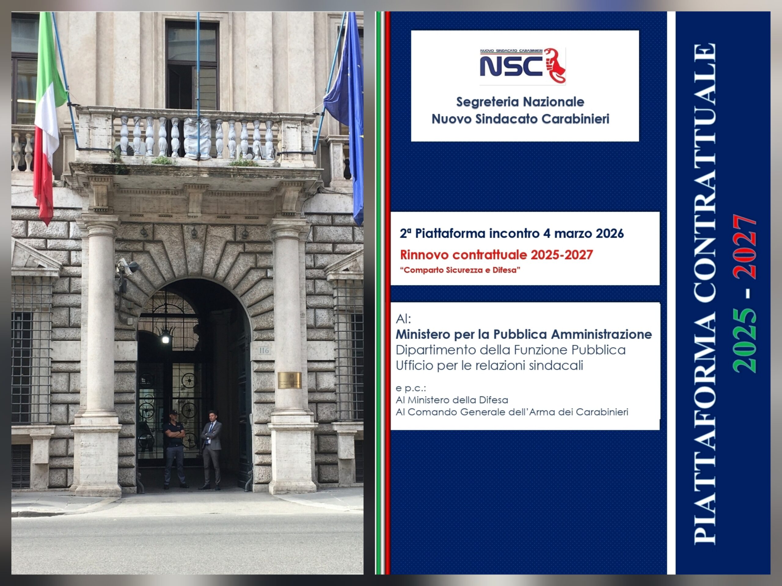 Mentre altri attendono di capire “che aria tira”, il Nuovo Sindacato Carabinieri agisce d’anticipo. Oggi, presso il Dipartimento della Funzione Pubblica, NSC siede al tavolo per l’avvio del triennio economico 2025-2027 con una piattaforma tecnica, innovativa e senza sconti.