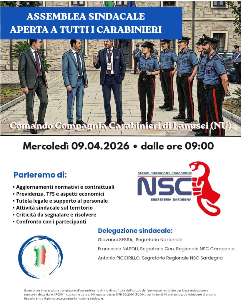 Il Nuovo Sindacato Carabinieri, nella mattinata di ieri 06 febbraio 2025, ha preso parte alla prima fase istruttoria di contrattazione del FESI presso la Sala Cinema del Comando Generale. Tutte le sigle rappresentative erano presenti ma, come di consueto, i dirigenti NSC si sono distinti grazie alle proposte innovative e concrete formulate. Tra le tante richieste contenute nello schema di contrattazione trasmesso all’Amministrazione, è stato posto l’accento su quelle che si ritengono determinanti per il benessere e valorizzazione del personale: l’indennità di “cambio turno” e l’inquadramento di zone ritenute ad alto impatto di salubrità per i colleghi: “la Terra dei Fuochi”. “Un riconoscimento doveroso – sostiene nel suo intervento il segretario Antonino Megna – per chi svolge il proprio servizio in località con alto tasso d’inquinamento e pericoli per la propria salute. “E’ importante valorizzare i colleghi che prestano servizio in condizioni di particolari difficoltà operative e sociali”, incalza il Segretario NSC Vincenzo Incampo portando l’esempio dei militari dei Reggimenti Mobili impegnati in Vigilanze su Obiettivi Sensibili e O.P nelle manifestazioni e quelli in servizio alle CIO “che nessuno sinora, ha degnato di alcuna menzione”, aggiunge Incampo. “Proprio le CIO – conclude il dirigente NSC, sono Reparti che di fatto sopperiscono alle carenze dell’Arma Territoriale ed in prima linea sugli interventi di P.G e P.S. più rischiosi”. A conclusione di questo primo appuntamento il Segretario Generale Massimiliano Zetti sottolinea quanto sia importante che l’Amministrazione poni l’ascolto delle APCSM al centro delle relazioni sindacali evitando di rifuggire in un’eccessiva burocrazia e stereotipi che, di fatto, danneggiano l’Amministrazione stessa.