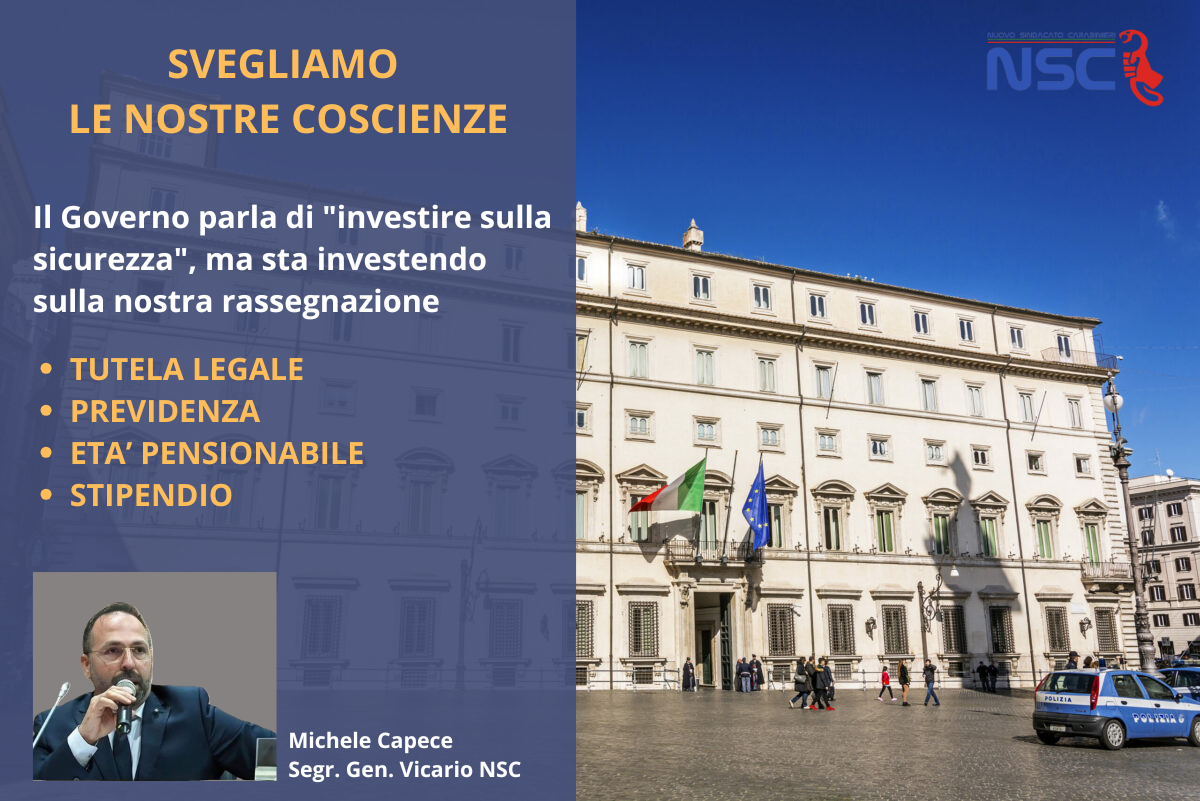 Il Governo parla di “investire sulla sicurezza”, ma sta investendo sulla nostra rassegnazione. Non aspettate che sia troppo tardi per capire cosa sta succedendo. NSC è argine a questa deriva. La nostra dignità non può essere in vendita, la nostra pensione non deve diventare un optional e la liquidazione è un nostro diritto che dobbiamo ricevere subito.
